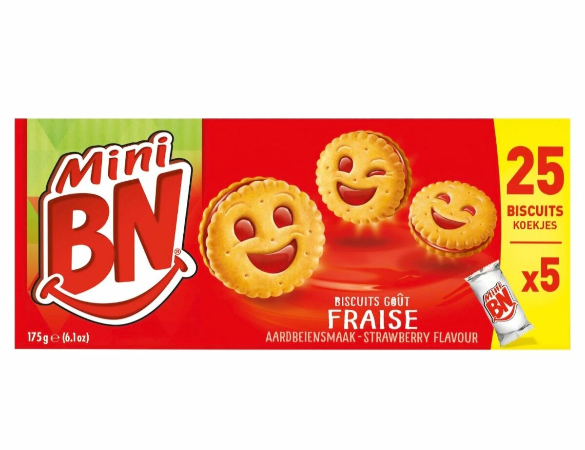 5 sachets de Mini BN ce sont de délicieux biscuits croustillants avec un fourrage gourmand à la pulpe de fraise, parfaitement adapté pour un goûter équilibré