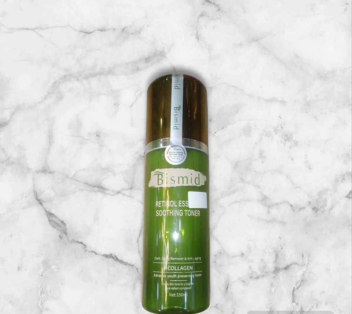 Toner apaisant à l'essence de rétinol de bismid ! C'est plein de collagène et de rétinol, ce qui fait des merveilles. Il a une amélioration significative de la texture et de la luminosité du visage et il est si doux et apaisant, même les peaux sensibles l'adore