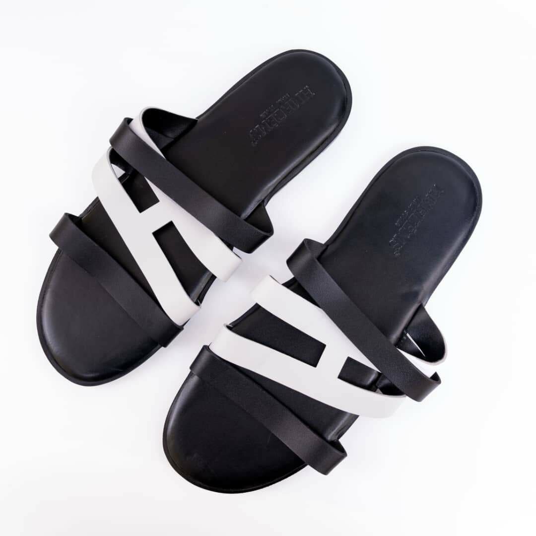 Sandales compensées en cuir noir pour femme