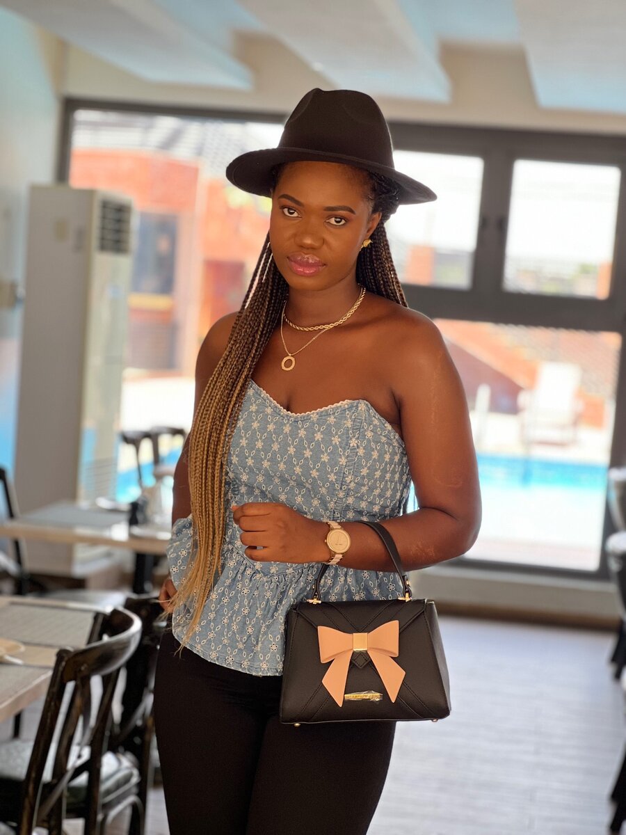 Black with nude bow, comes with long strap, made of leather, comes in a box