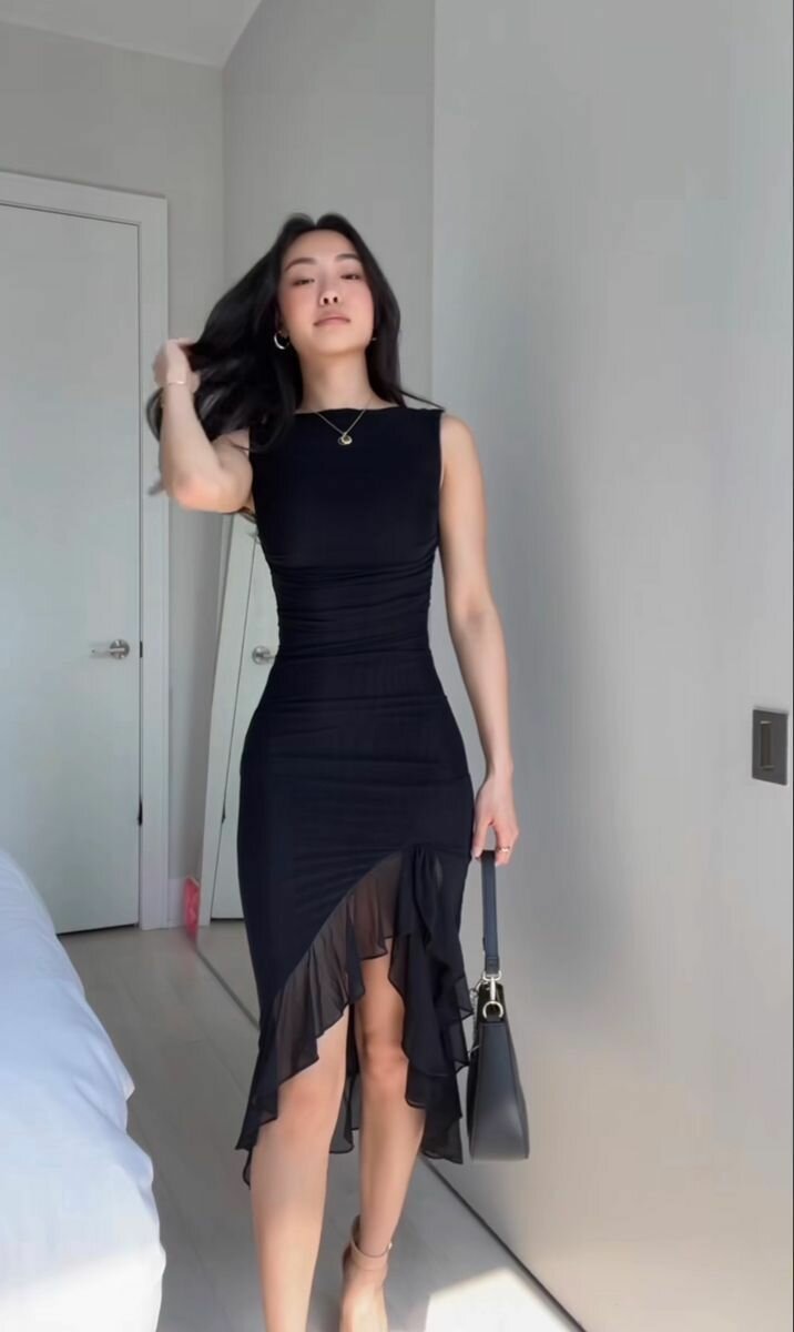 Elevate your style with this sleek black bodycon midi dress. Featuring a fitted silhouette and stylish slit, it's perfect for evening events or a night out. Made from comfortable material, it offers a flattering fit.