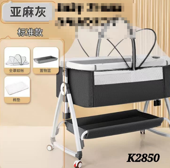 black crib with a net
