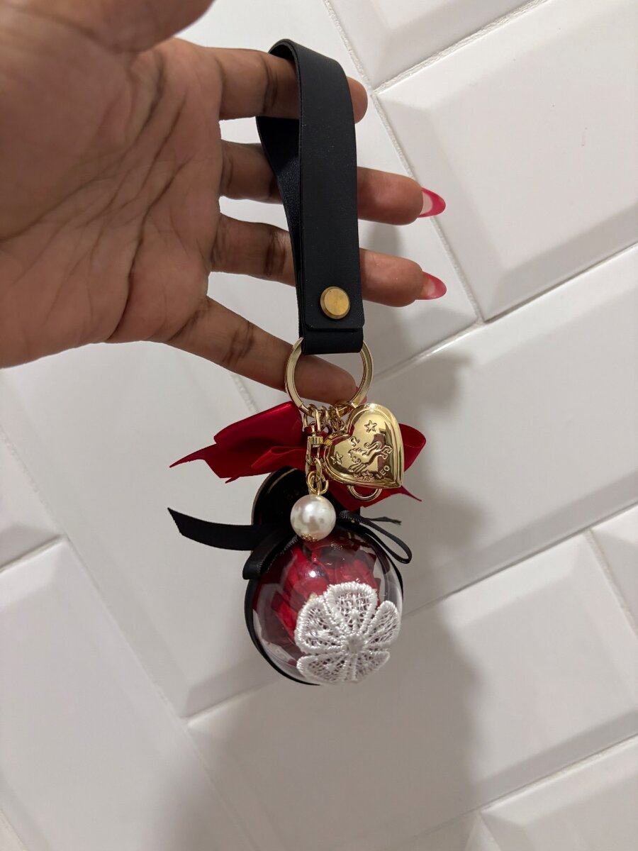 Black keychain with rose
