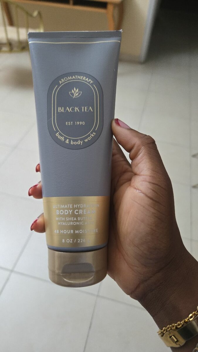 Indulge in the luxurious Bath & Body Works Black Tea Ultimate Hydration Body Cream. Enriched with shea butter and hyaluronic acid, it deeply moisturizes and nourishes dry skin, leaving it soft and smooth. Ideal for daily hydration.
