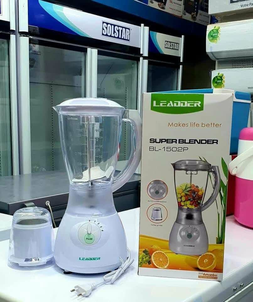 Découvrez le blender Super Leader BL-1502P, idéal pour préparer des smoothies, soupes et purées en un clin d'œil. Avec son moteur puissant et ses lames en acier inoxydable, il garantit des mélanges parfaits et homogènes. Parfait pour une utilisation quotidienne en cuisine. Facile à nettoyer et durable, c'est un ajout essentiel à votre collection d'appareils de cuisine.
