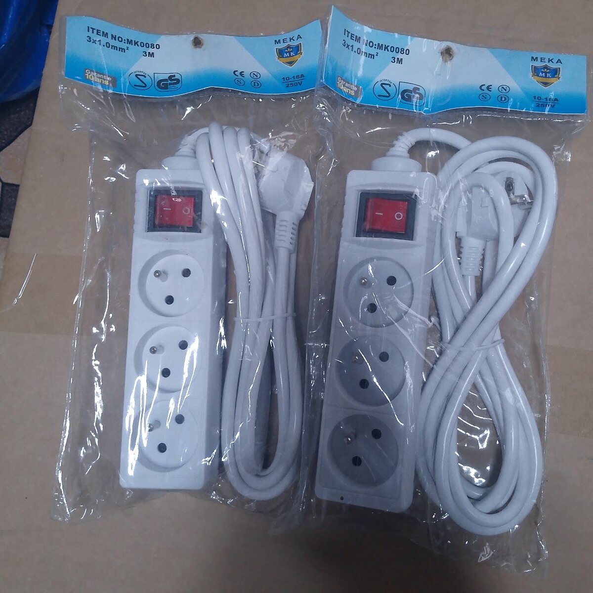 Bloc multiprise avec interrupteur, idéal pour brancher plusieurs appareils. Longueur de câble de 3m pour une flexibilité accrue. Convient pour la maison ou le bureau.