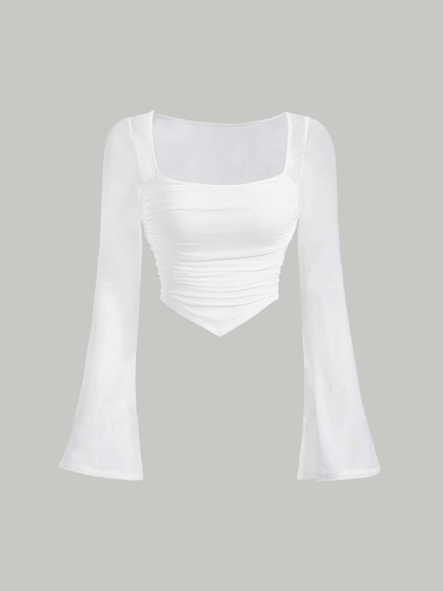 Cette élégante blouse blanche présente des manches longues évasées et un col carré flatteur. Sa coupe ajustée et son tissu léger la rendent idéale pour une tenue casual ou plus habillée. Parfaite pour les sorties en soirée ou les journées décontractées, elle s'accorde facilement avec un pantalon ou une jupe. Un choix polyvalent et chic pour toute garde-robe.