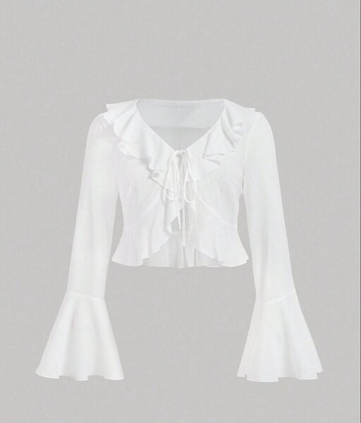 Découvrez cette blouse blanche élégante avec volants, parfaite pour un look chic et décontracté. Fabriquée dans un tissu léger et agréable, elle est idéale pour le bureau ou une soirée entre amis. Taille L, facile à assortir avec un pantalon ou une jupe. Parfaite pour le printemps et l'été.