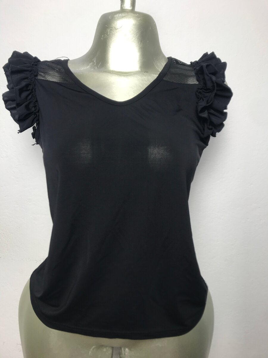 Élégante blouse noire avec manches volantées en maille, idéale pour un look chic au quotidien. Fabriquée en tissu léger, elle offre un confort optimal et un style moderne. Parfaite pour des occasions décontractées ou professionnelles, elle s'associe facilement avec des jupes ou des pantalons.