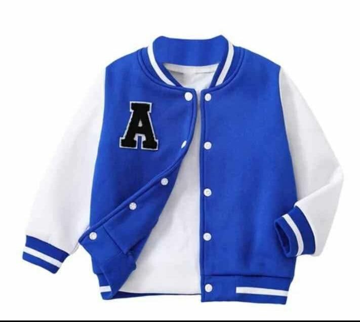 Blouson Teddy enfant confortable et stylé, idéal pour toutes les saisons. Disponible en bleu et noir, avec une lettre "A" en design. Fabriqué en matériaux doux, parfait pour l'école ou les loisirs.