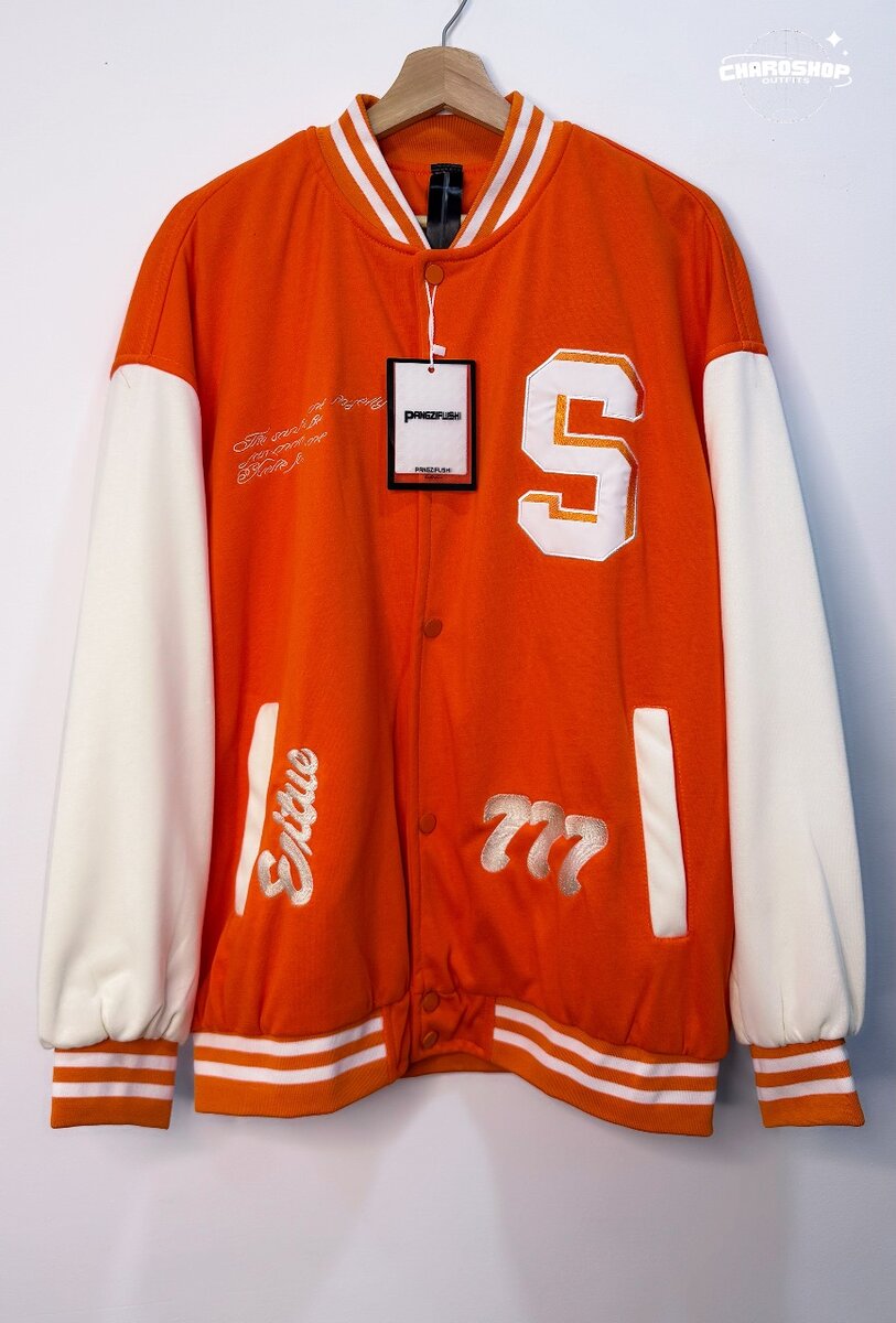 Ce blouson universitaire orange vif est parfait pour ajouter une touche sportive à votre garde-robe. Avec ses manches blanches contrastantes et ses détails brodés, il allie style et confort. Idéal pour les sorties décontractées, ce blouson est un choix incontournable pour les passionnés de mode.