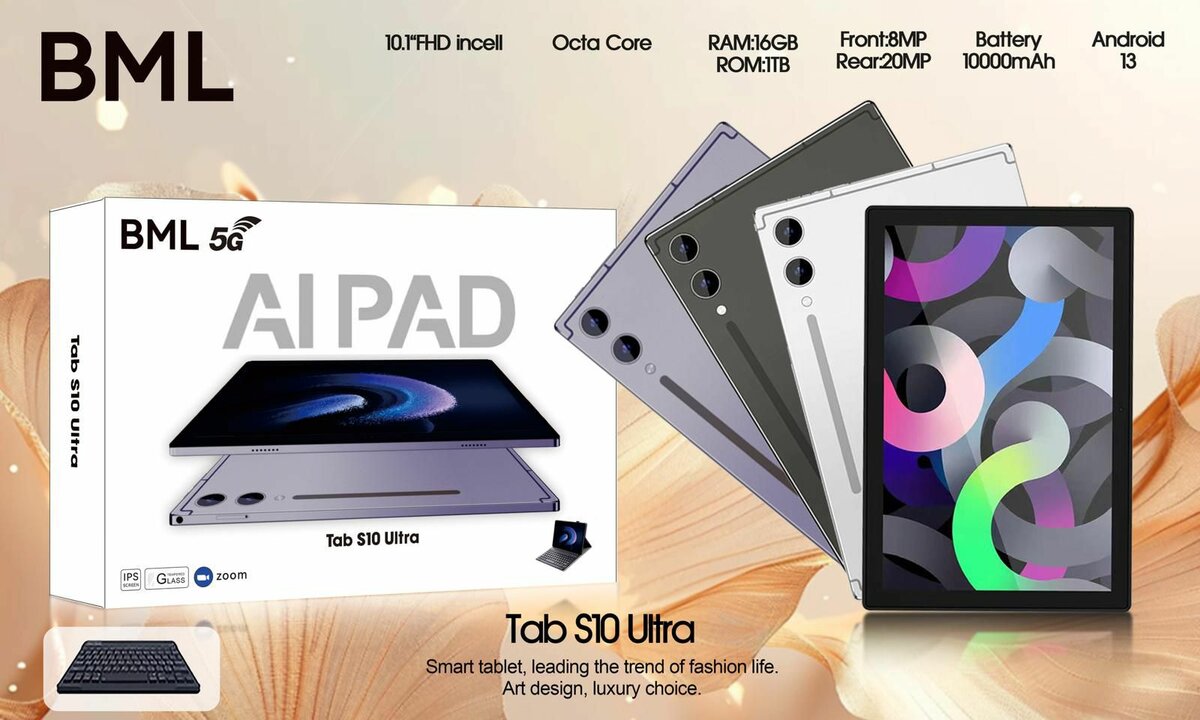 Faites l'expérience de performances inégalées avec le BML Tab S10 Ultra. Doté d'un écran FHD de 10,1 pouces, d'un puissant processeur Octa-Core et de 16 Go de RAM. Idéal pour le travail et le divertissement, avec une caméra arrière de 20MP, une batterie de 10000mAh et Android 13. Élevez votre vie numérique.