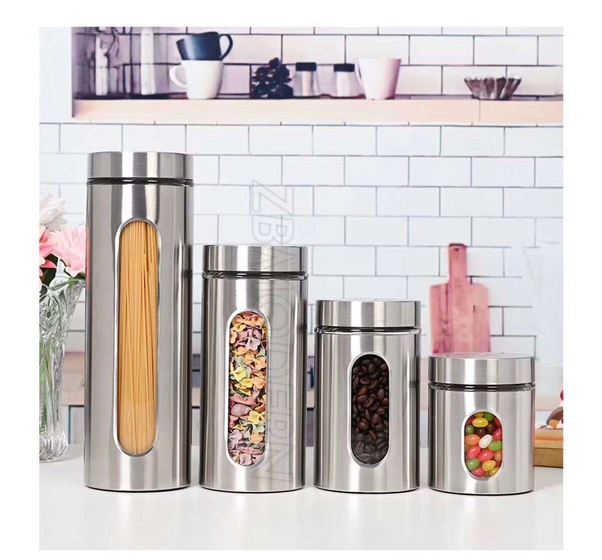 Conservez vos aliments avec style grâce à ces bocaux en acier inoxydable. Parfaits pour les pâtes, grains, et plus. Idéal pour une cuisine moderne et organisée.
