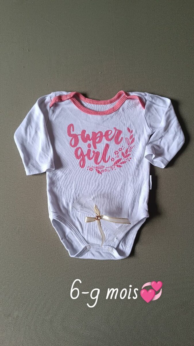 Adorable body pour bébé fille avec inscription "Super Girl". Fabriqué en coton doux pour un confort optimal. Parfait pour les petites héroïnes de 6 à 9 mois. Cadeau idéal pour une naissance ou un anniversaire.