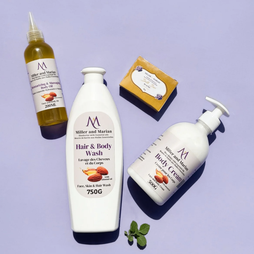 Miller and Marian Sheabutter with Essential oils Benefits 1. Clears acne and darkspots 2. Soft and Smooth skin 3. Evens skin tone 4. Clears scars and dark knuckles For a beautiful African skin use Miller and Marian