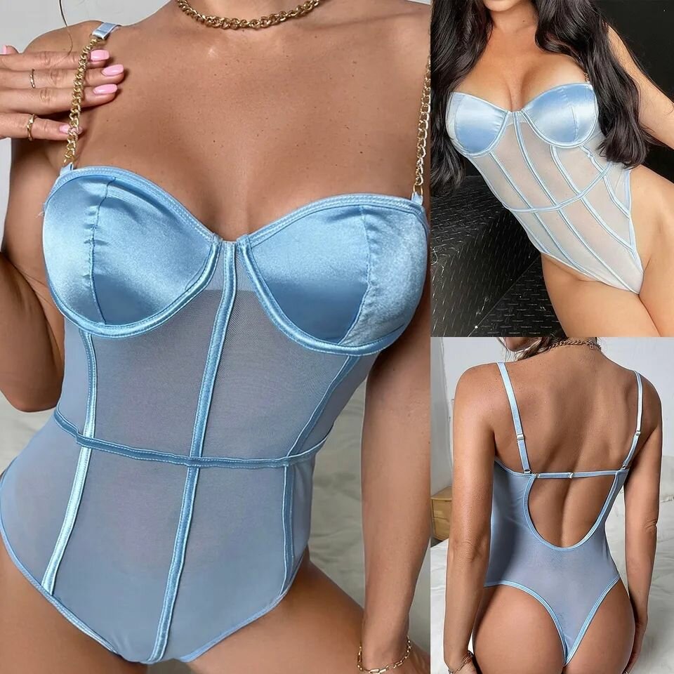 Découvrez notre body en dentelle bleu, conçu avec une élégance exceptionnelle pour sublimer votre silhouette. Parfait pour des occasions spéciales ou pour ajouter une touche glamour à votre quotidien. Fabriqué avec des matériaux de haute qualité pour un confort inégalé. Les détails en chaîne dorée ajoutent une touche de luxe et de sophistication. Idéal pour se sentir féminine et confiante, ce body est le choix parfait pour toutes les femmes qui souhaitent se démarquer.