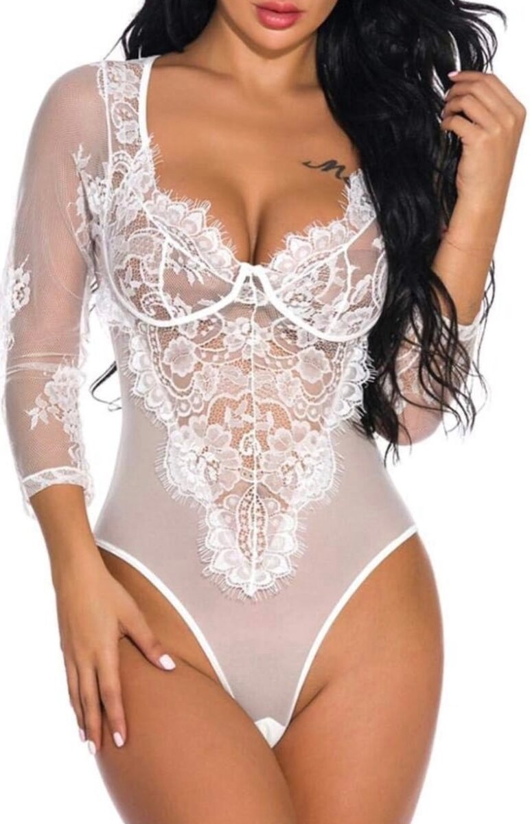 Découvrez ce body en dentelle blanche, conçu pour révéler votre élégance et votre sensualité. Idéal pour des occasions spéciales ou pour une touche glamour au quotidien. Confortable et délicat, il épouse parfaitement les formes pour un rendu sublime.