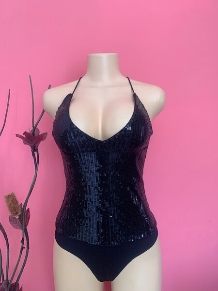 Top à paillettes noir femme