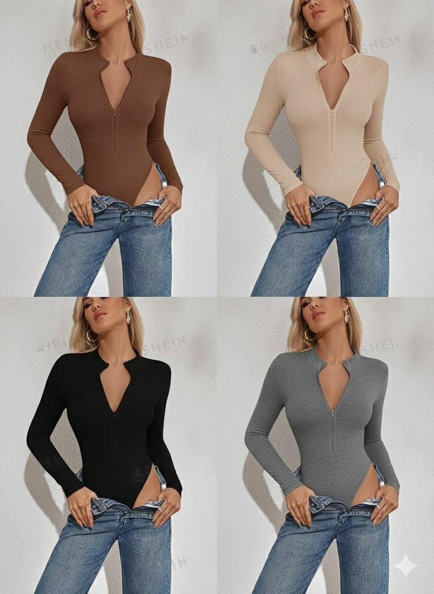 Ce body élégant et ajusté met en valeur votre silhouette avec son décolleté audacieux. Fabriqué en tissu doux et extensible, il est parfait pour les soirées ou un look décontracté. Disponible en plusieurs couleurs, il se marie facilement avec vos jeans préférés pour un style chic et moderne. Idéal pour les femmes cherchant à allier confort et élégance au quotidien.