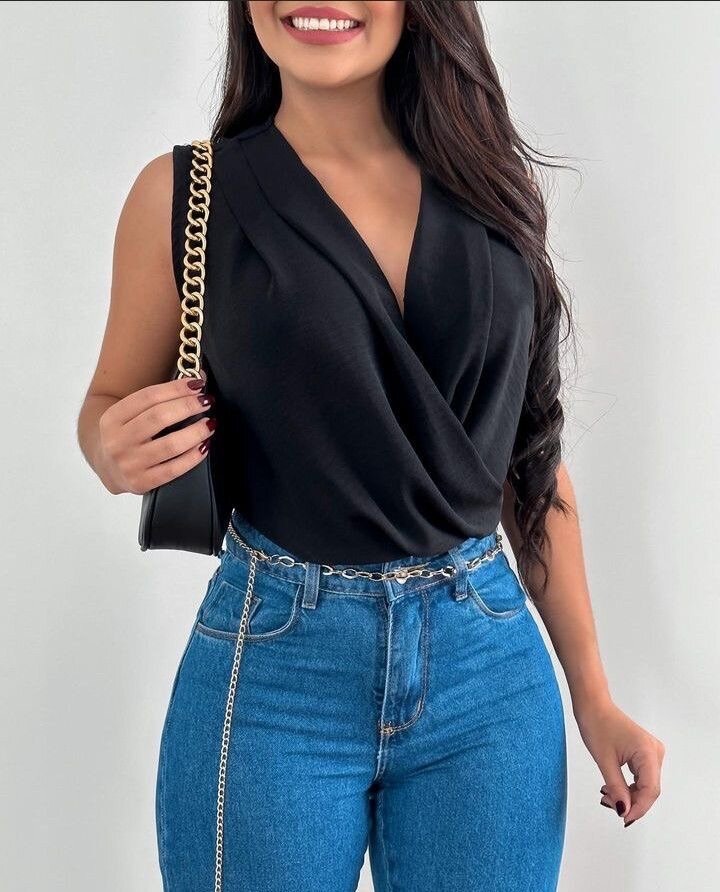Découvrez notre body noir élégant pour femme, idéal pour sublimer votre look. Avec sa coupe croisée flatteuse et son tissu doux, il s'adapte aussi bien aux tenues de bureau qu'aux sorties décontractées. Parfait pour ajouter une touche chic à vos ensembles. Convient à toutes les saisons.