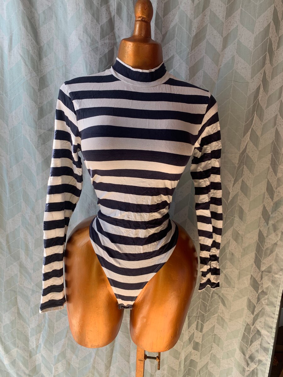 Ce body rayé noir et blanc à manches longues est un incontournable pour un style moderne. Fabriqué avec des matériaux de qualité, il offre confort et élégance. Idéal pour toutes les saisons, il peut être porté seul ou sous une veste. Un choix parfait pour ajouter une touche de classe à votre garde-robe.