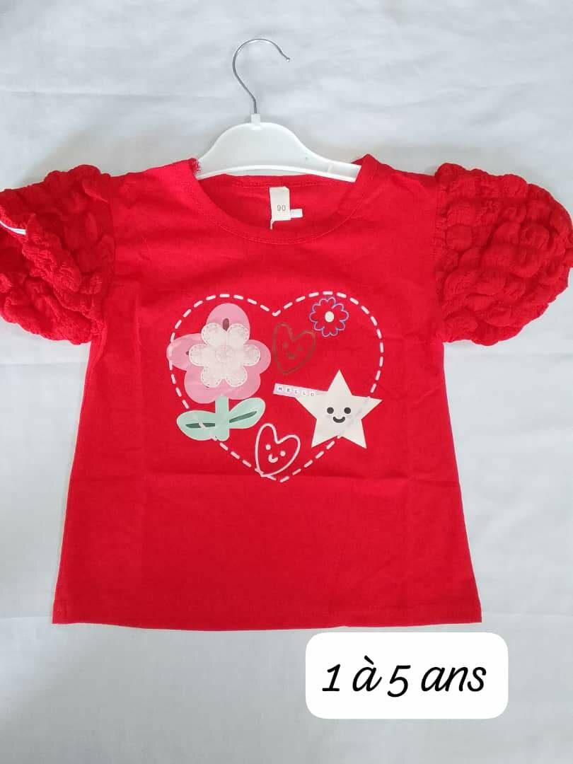 Body rouge avec motifs devant Froufrou aux manches Disponible de 1 à 5 ans