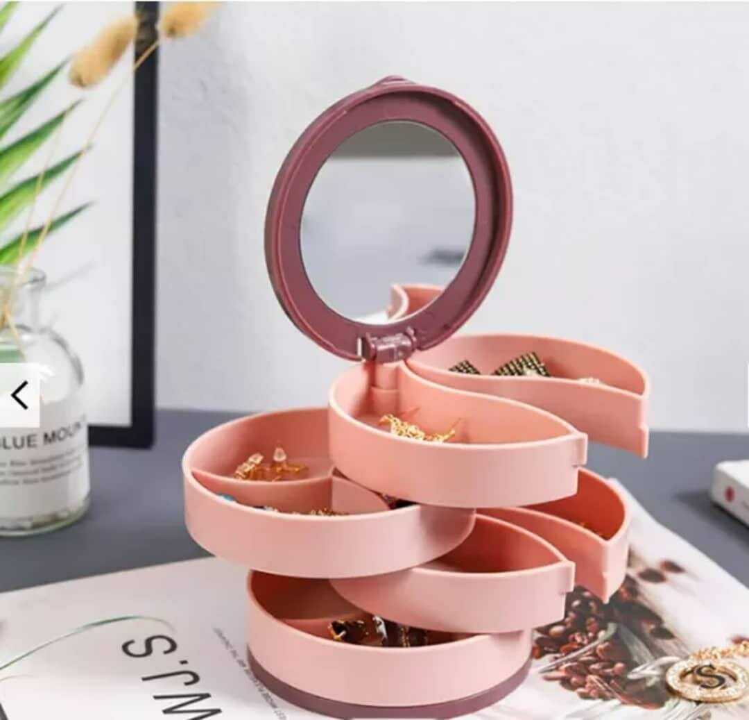 Découvrez notre boîte à bijoux rotative innovante, parfaite pour organiser vos bijoux avec style et praticité. Avec ses compartiments spacieux, elle gardera vos bagues, bracelets et colliers en ordre. Dotée d'un miroir intégré, elle est idéale pour réaliser vos essayages. Convient parfaitement pour la chambre ou la salle de bain, et ajoute une touche élégante à votre décoration intérieure. Un choix parfait pour les amateurs de bijoux qui apprécient l'ordre et le design moderne.
