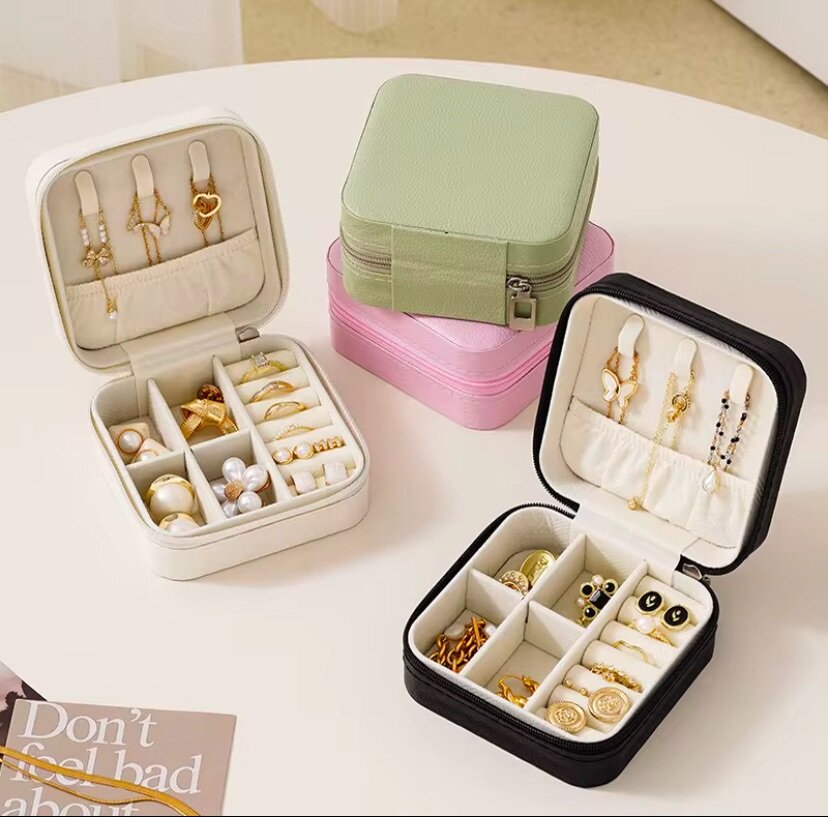 Gardez vos bijoux organisés avec cette boîte à bijoux portable élégante. Avec ses compartiments bien conçus, elle est idéale pour ranger vos bagues, colliers et boucles d'oreilles en toute sécurité. Parfaite pour les voyages, elle se glisse facilement dans votre sac à main. Disponible en plusieurs couleurs chic.