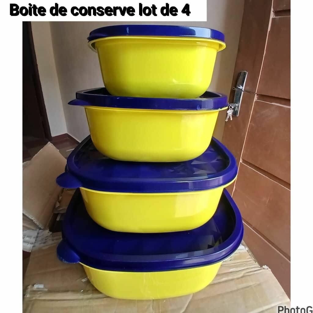 Lot de 4 boîtes colorées avec couvercles. Parfait pour la conservation des aliments. Idéal pour la cuisine moderne, facile à nettoyer et durable.