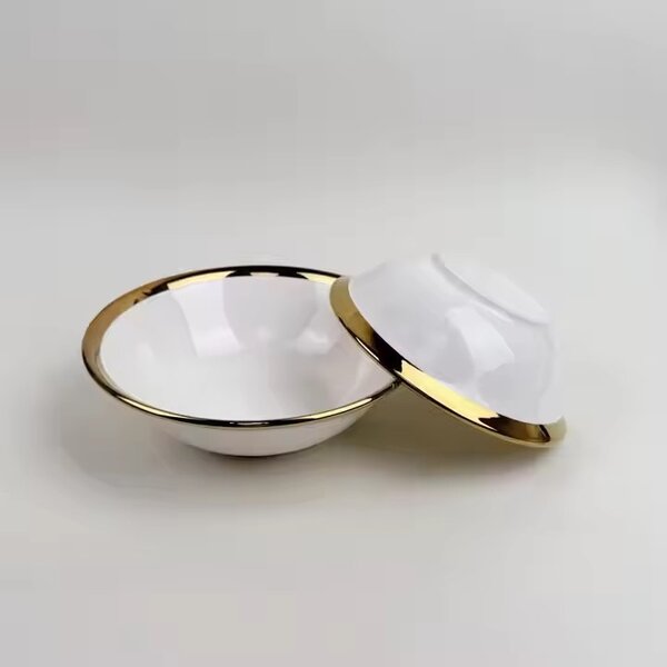 Ajoutez une touche d'élégance à votre table avec ce bol en porcelaine blanche, ornée d'une bande dorée. Idéal pour les soupes, céréales ou plats d'accompagnement, ce bol combine esthétique et fonctionnalité. Parfait pour les occasions spéciales ou un repas quotidien raffiné.