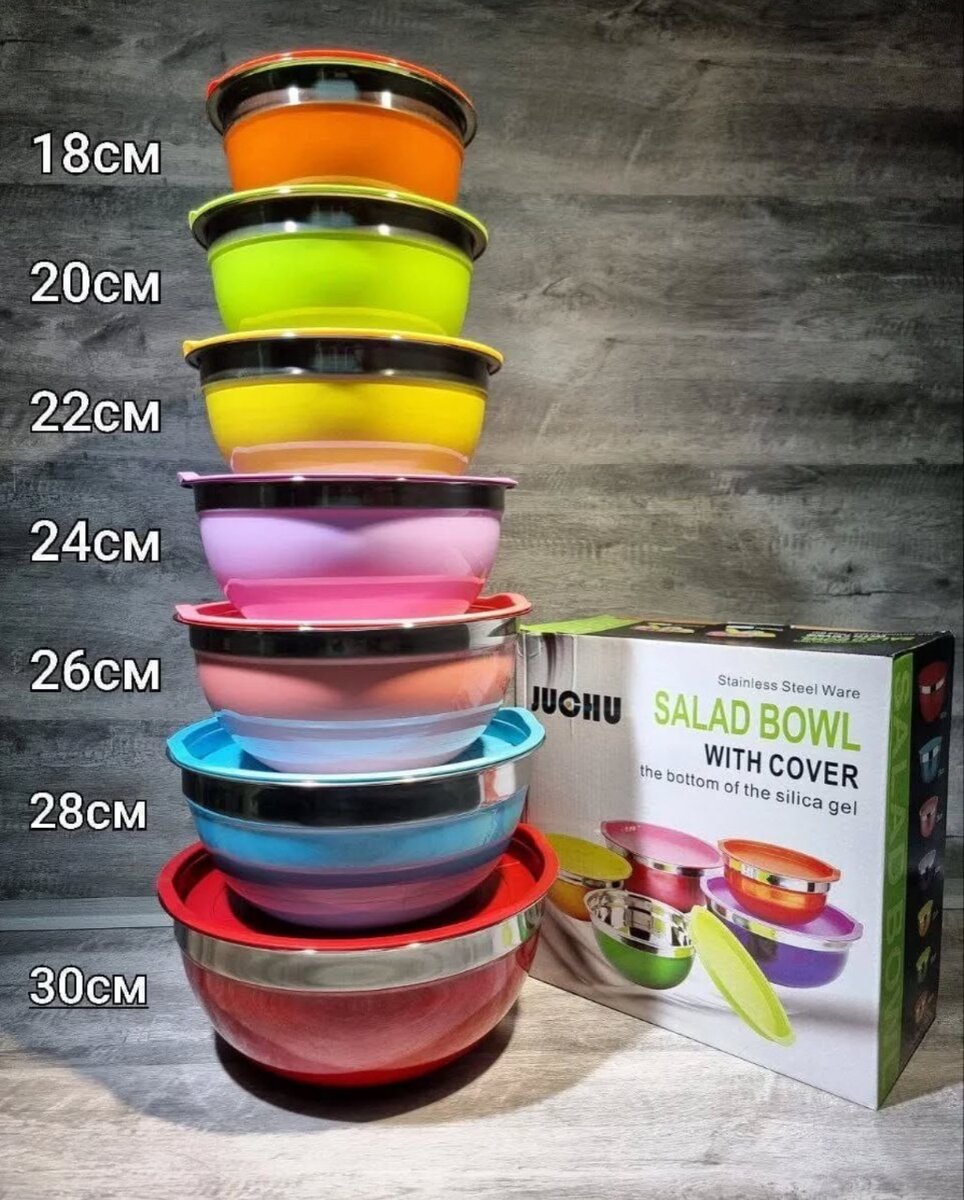 Découvrez ces bols multifonctions en acier inoxydable avec couvercle hermétique. Parfait pour préparer des salades, fouetter des œufs ou pétrir de la pâte. Idéal pour un usage quotidien en cuisine !