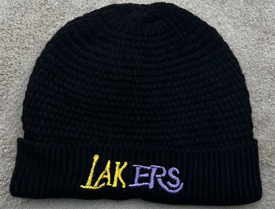 Ce bonnet confortable noire "Lakers" est parfait pour les fans de sport et les sorties décontractées. Gardez-vous au chaud tout en affichant votre passion.