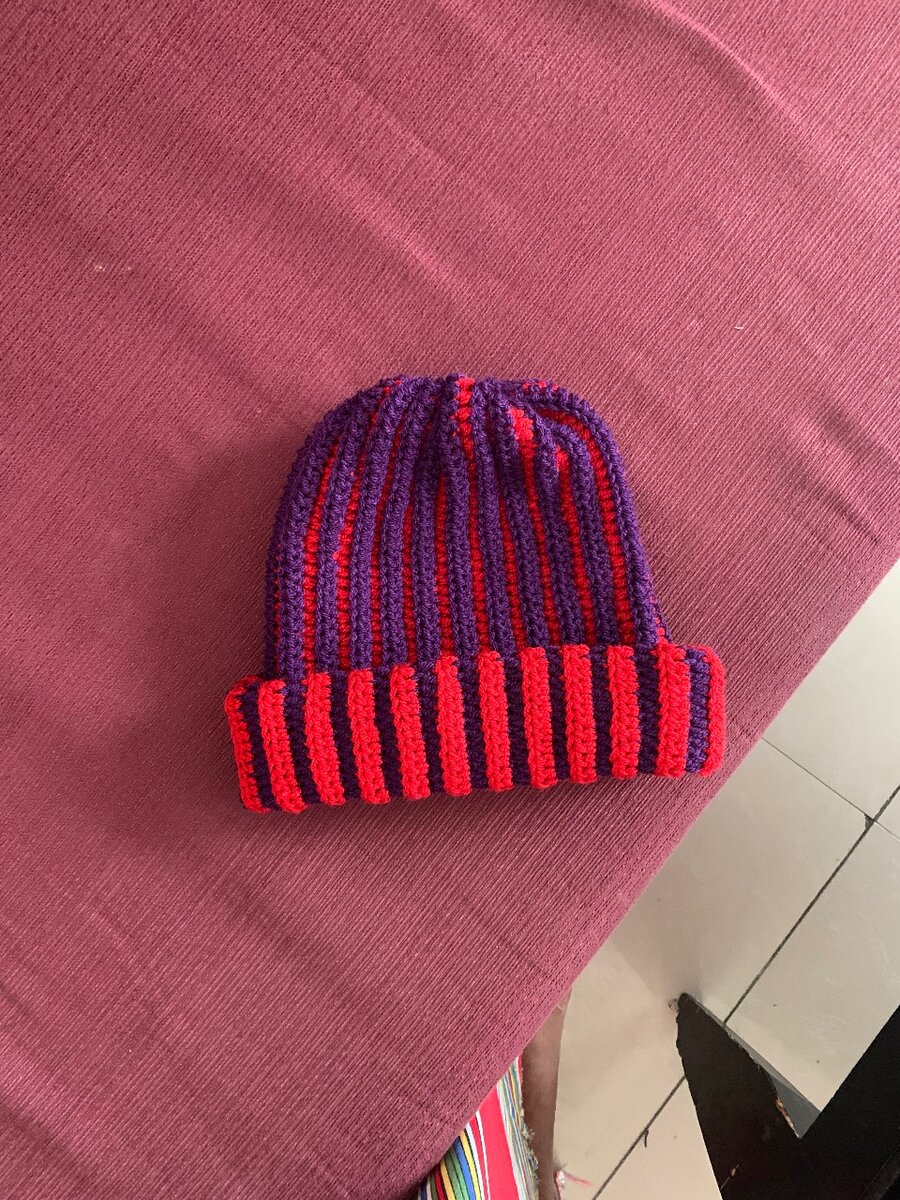 Chaud et tendance, ce bonnet rayé en tricot est l'accessoire parfait pour l'hiver. Conçu pour garder la tête au chaud avec style, il allie confort et esthétique, et est idéal pour toutes vos sorties par temps froid.