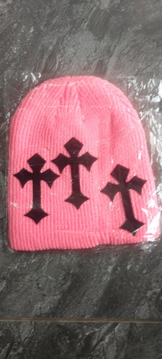 Bonnet rose à croix noires