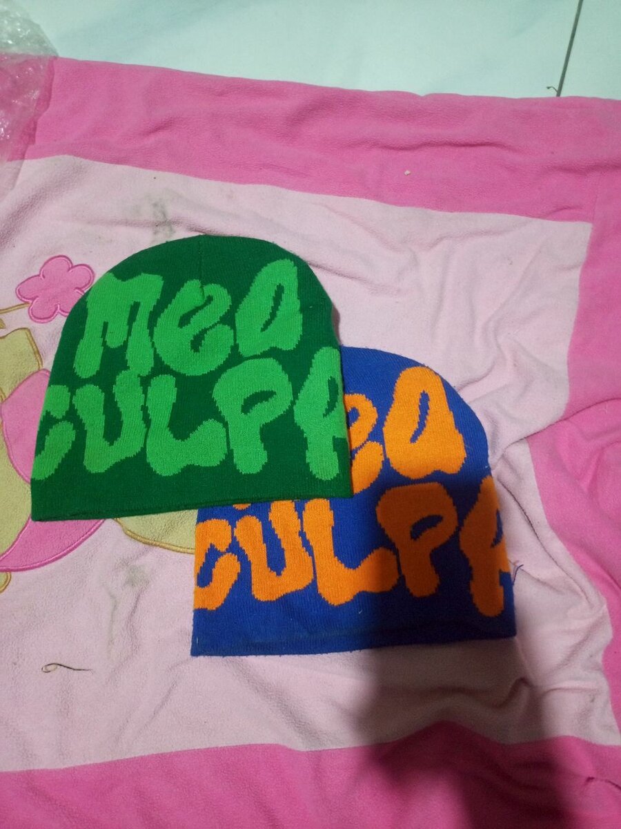 Ajoutez une touche audacieuse à votre style avec ce bonnet tricoté 'MEA CULPA'. Disponible en couleurs vibrantes, il offre à la fois confort et originalité, parfait pour les journées froides. Un choix idéal pour les amateurs de mode urbaine et décontractée.