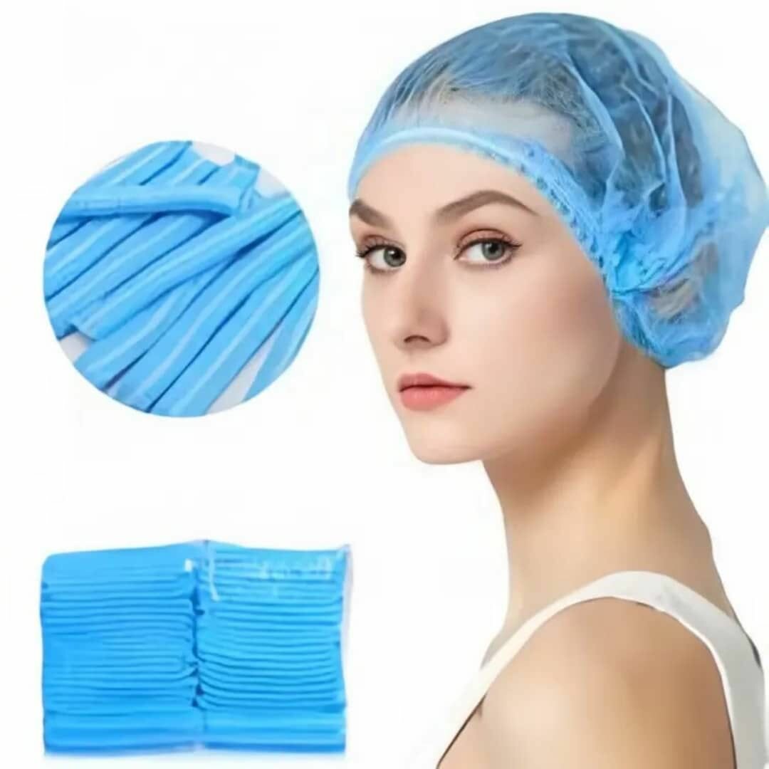 Bonnets jetables bleus pour usage médical ou beauté. Confortables et élastiques, idéals pour professionnels.