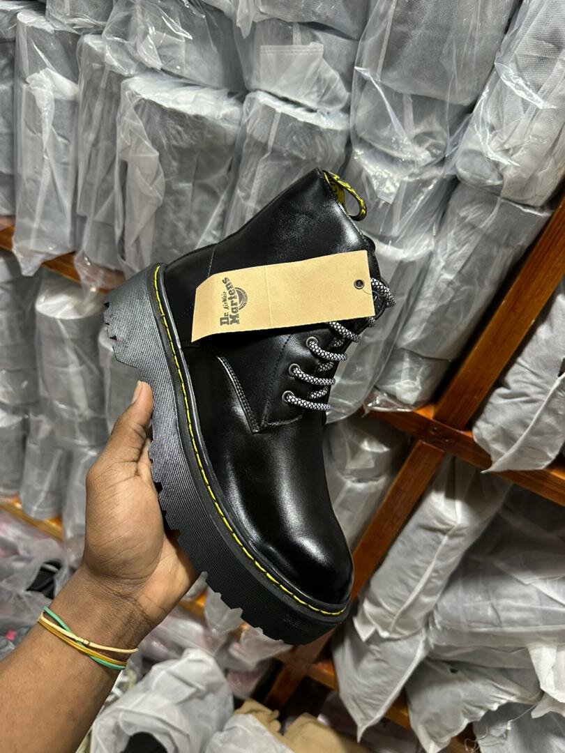 Découvrez ces bottes noires en cuir, parfaites pour un look audacieux. Avec leur semelle résistante et leur design élégant, elles sont idéales pour les sorties urbaines. Confortables et durables, elles sont un incontournable de votre garde-robe.