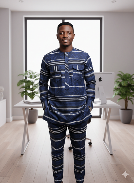Découvrez notre boubou africain élégant et moderne, parfait pour les occasions formelles ou décontractées. Conçu en tissu de haute qualité, il offre confort et style avec ses motifs à rayures distinctifs. Idéal pour les événements culturels ou un style quotidien unique, ce boubou met en valeur votre confiance et votre élégance.