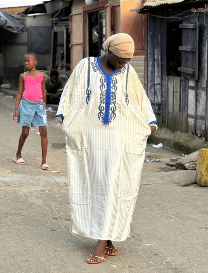 Boubou marocain blanc original avec broderie bleu lazarne importé