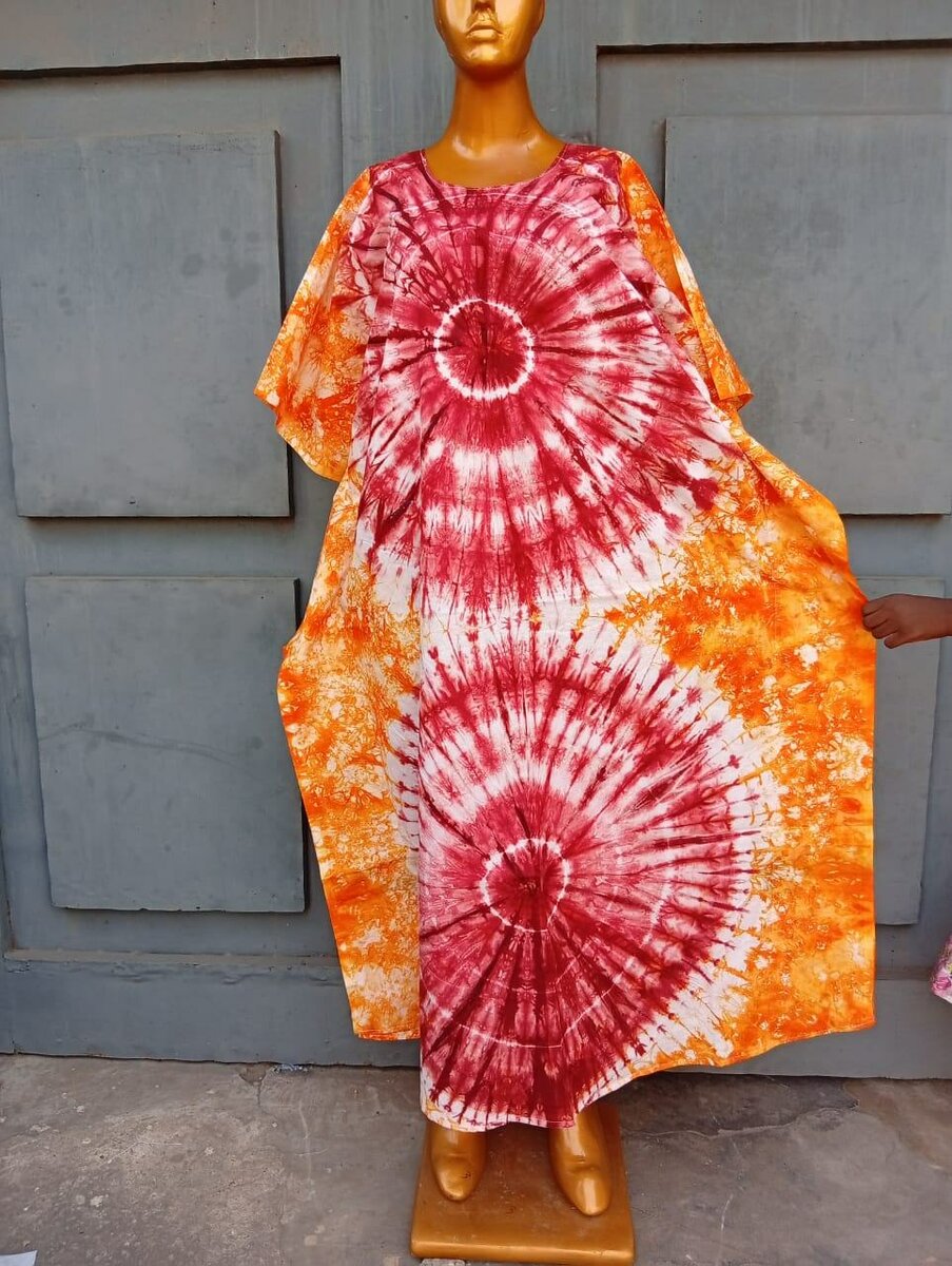 Découvrez cette robe caftan avec un magnifique motif tie-dye rouge et orange. Parfaite pour un look bohème et décontracté, elle est idéale pour les journées chaudes ou des événements décontractés. Fabriquée en matériau léger et respirant, elle offre confort et style unique. Un choix parfait pour les amoureuses de la mode originale!