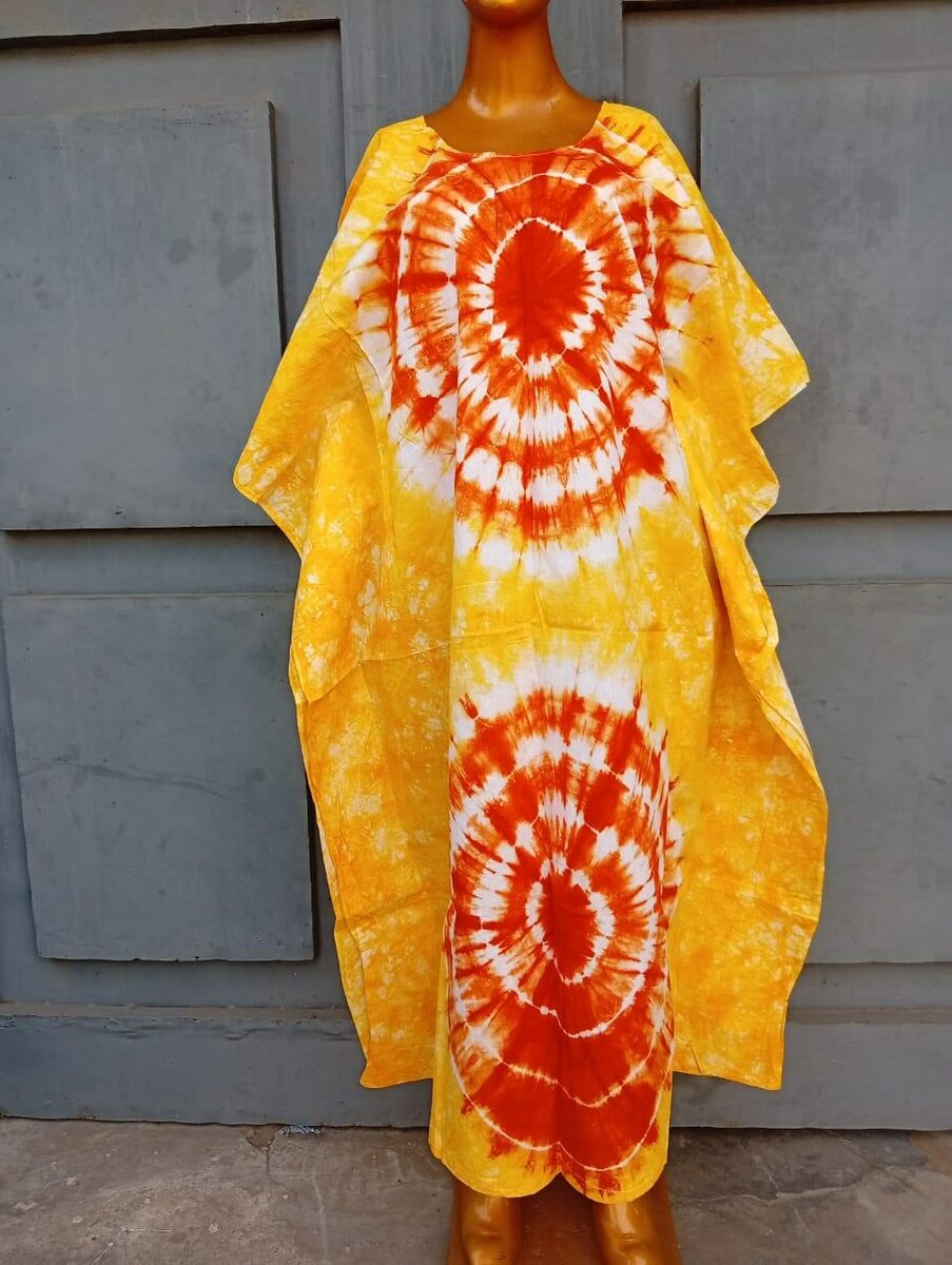 Chemise africaine ample et confortable, parfaite pour les journées décontractées. Motif tie-dye unique, couleur jaune et orange. Idéale pour les femmes qui aiment les styles ethniques et confortables.