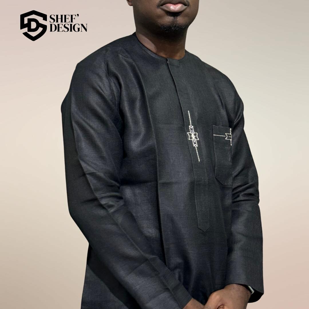 Découvrez ce boubou noire, conçue avec un tissu luxueux pour une allure chic et distinguée. Idéale pour des occasions spéciales ou des événements culturels.