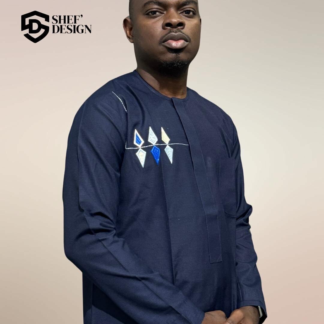 Optez pour cet élégant boubou pour un style distinctif et moderne. Conçue avec des motifs géométriques, elle est idéale pour toutes occasions spéciales ou formelles. Fabriquée avec soin et attention aux détails, c'est le choix parfait pour ceux qui veulent se démarquer avec classe.