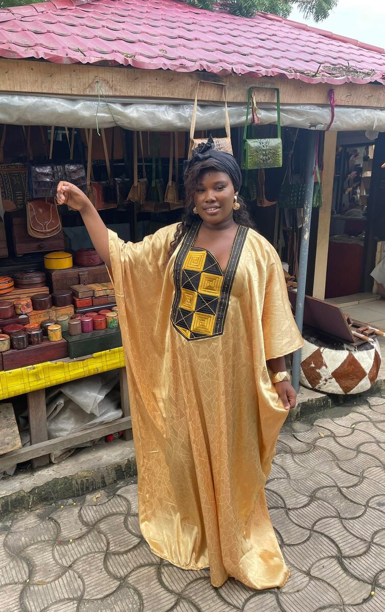Découvrez l'élégance intemporelle de ce boubou doré . Parfait pour des occasions spéciales, il allie confort et sophistication. Idéal pour les femmes cherchant une tenue chic .