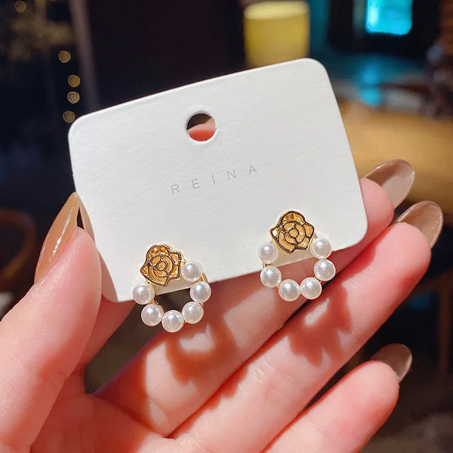 Boucle d'oreille en forme de rose avec des perles