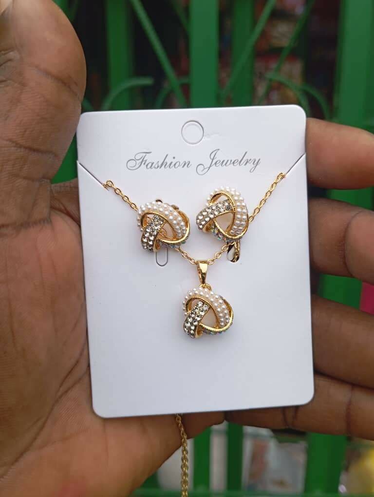 Ce magnifique ensemble de bijoux dorés est parfait pour ajouter une touche d'élégance à vos tenues. Il comprend un collier et des boucles d'oreilles assorties avec des accents perlés et des détails scintillants.