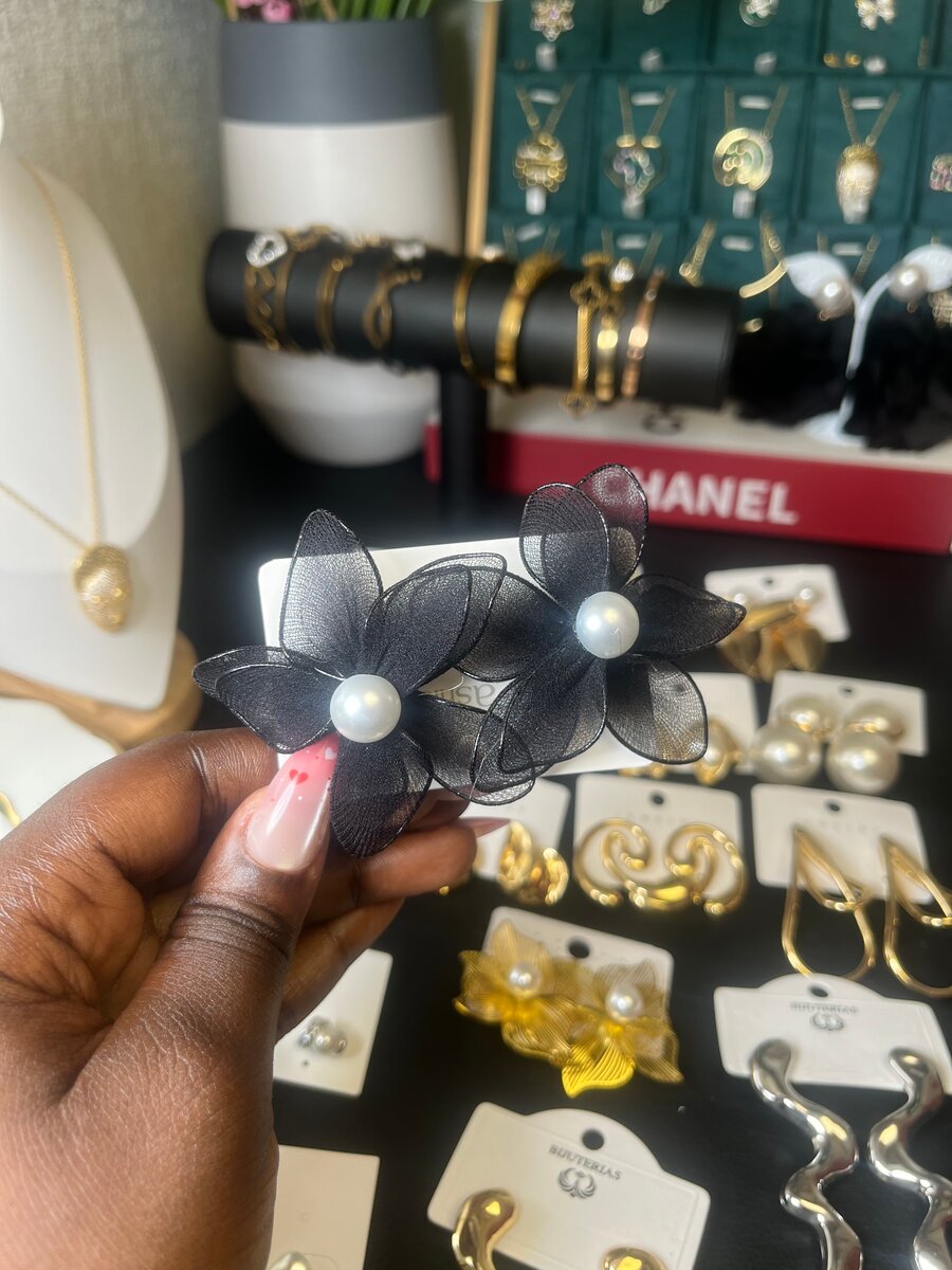 Elegant Black Floral Earrings
