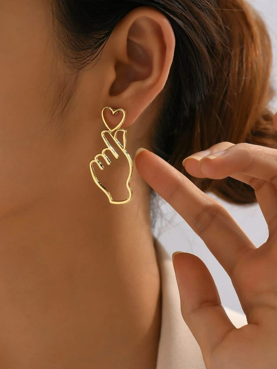 Ajoutez une touche d'amour à votre tenue avec ces boucles d'oreilles dorées en forme de cœur et de main. Parfait pour les occasions spéciales ou un look quotidien plein d'élégance et de style. En métal de haute qualité pour une durabilité optimale.