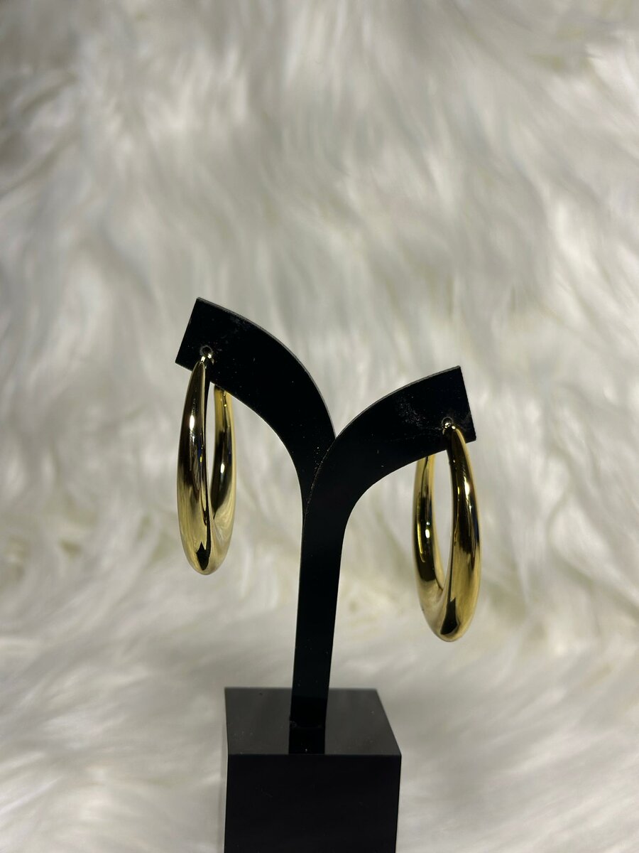 Découvrez l'élégance intemporelle avec nos boucles d'oreilles créoles dorées. Parfaites pour ajouter une touche sophistiquée à n'importe quelle tenue, ces boucles d'oreilles sont un choix idéal pour les occasions formelles ou décontractées. Leur design chic et leur finition brillante captivent et rehaussent votre style avec grâce.