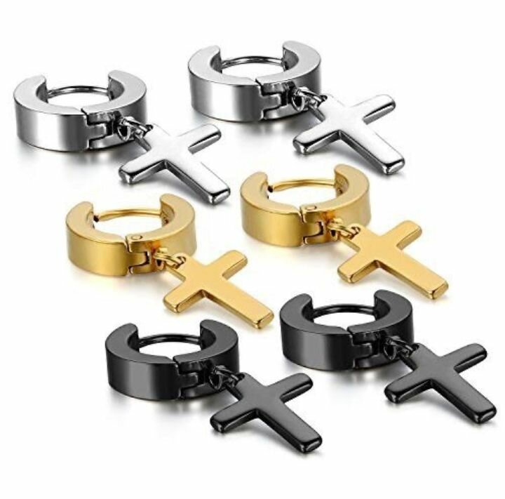 Ajoutez une touche élégante et spirituelle à votre style avec ces boucles d'oreilles en acier inoxydable. Disponibles en argent, or et noir, elles sont parfaites pour toutes occasions. Idéal pour un look moderne et raffiné.